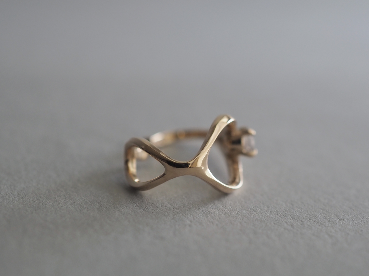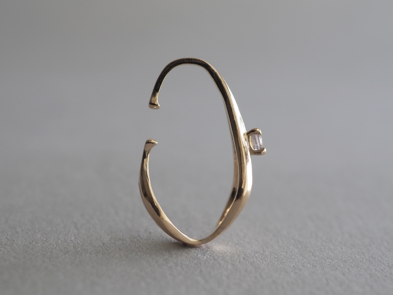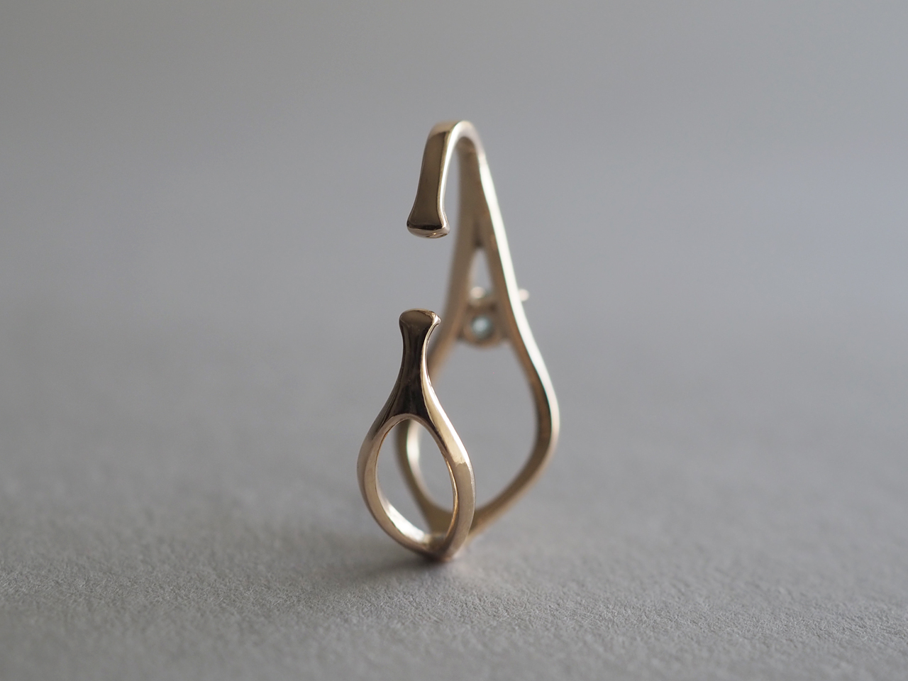 EC-B-001/002 一粒の石と ニュアンスのあるカーブが印象的なイヤーカフ 「∞」のカタチを縦にして曲げると前後にドロップ型の輪が覗く 柔らかなラインが交差するカタチ color Gold Material K10 white sapphire/blue green sapphire ONLINE SHOP