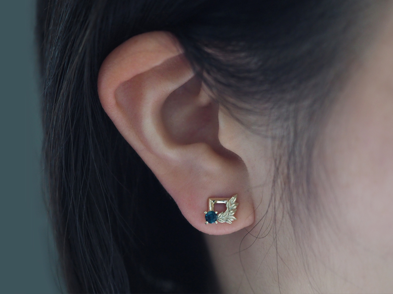 絵画の額縁のようなフォルムのプチピアスを制作いたしました。