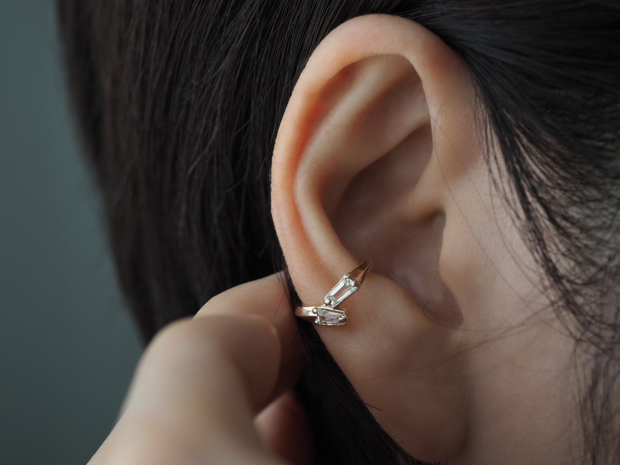 イヤーカフは、耳元をくるりと囲むカタチなので、